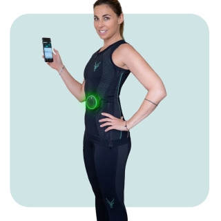 Die Elektroden im Tank Top senden elektrische Impulse an Rücken, Bauch und Rumpf. Beinbizeps, Quadrizeps, Gesäß und Wadenmuskulatur aktivierst du durch die Elektroden in den Leggings. Und das ganz individuell: Du kannst sie einzeln steuern und ihre Intensität nach deinen Wünschen anpassen.